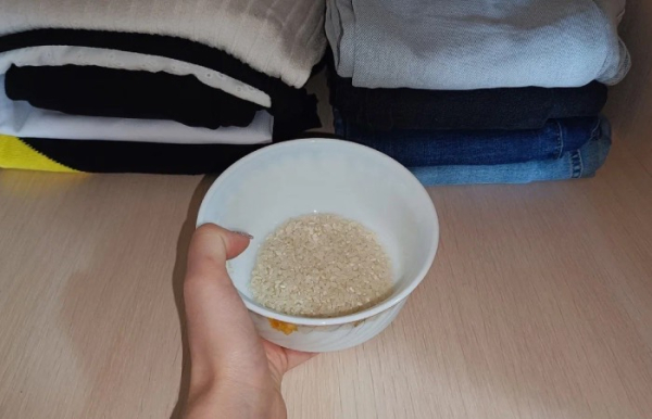 Йдеться про миску з рисом. Саме її слід помістити у шафу. Якщо ваш гардероб досить великий, краще взяти пару мисок з рисом. Ця крупа дивним чином вбере надлишки вологи і поглине неприємні запахи. І вже після цього можна розміщувати в шафі натуральні ароматизатори.