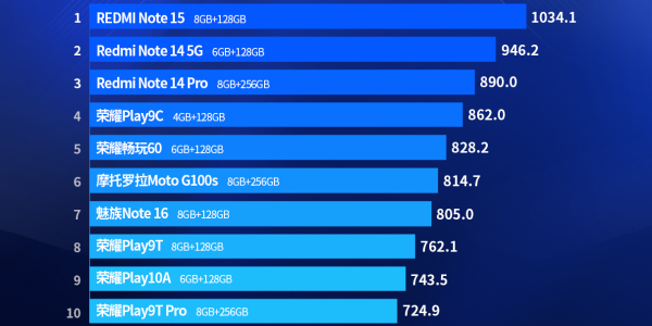 В ультрабюджетному сегменті (до 145 доларів) перше місце посів Redmi Note 15 на базі Snapdragon 6 Gen 3. За ним розташувалися Redmi Note 14 5G з чіпом Dimensity 7025 Ultra і Redmi Note 14 Pro з процесором Dimensity 7300 Ul.