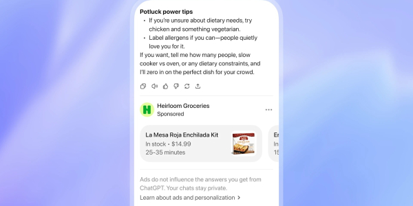 Користувачі нерідко звертаються до ChatGPT, коли досліджують можливі варіанти, порівнюють ідеї та формують рішення. У ці моменти реклама стає способом познайомити людей із продуктами та сервісами, які можуть їм сподобатися, від компаній будь-якого масштабу.