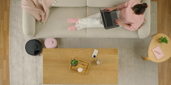 У комплект входить компактна док-станція, яка заряджає девайс і автоматично очищає контейнер для сміття. Для цього використовуються змінні мішки: обсягу вистачає приблизно на три місяці.