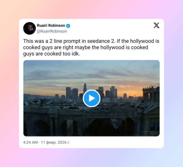 Це неймовірно. Зроблено у Seedance 2.0 за допомогою всього одного промпту! Голівуду кінець!