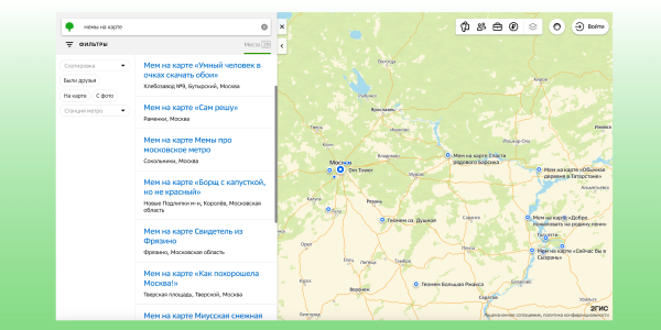 У геосервісі «2ГІС» з'явилися меми, вбудовані у карти. Це локальні жарти, пов'язані з конкретними містами та місцями. Щоб побачити їх, достатньо ввести в пошуку запит «меми на карті».