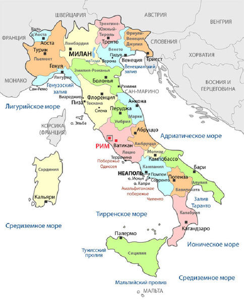 І все ж таки я запрошую вас на коротку ознайомлювальну прогулянку картою Італії. Почнемо свій шлях із північного сходу країни, який освітлюється першими променями сонця.